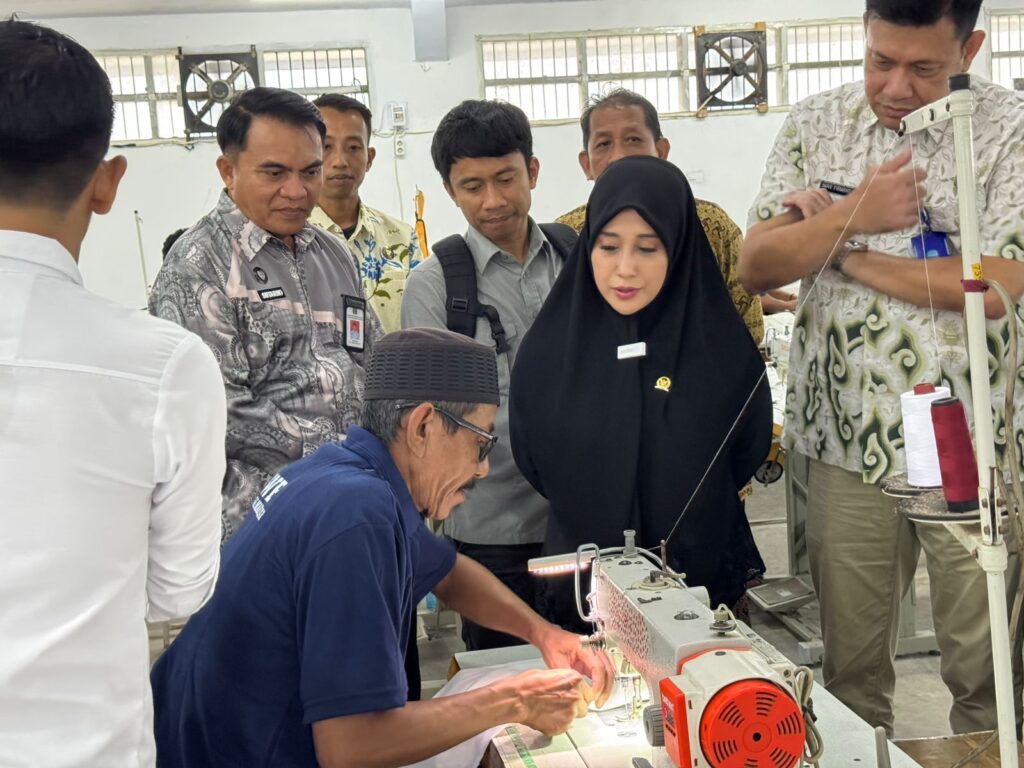 Dalam kunjungan ini, Meity berkesempatan melihat langsung pelayanan yang diberikan klinik Lapas Makassar dan pembinaan kemandirian yaitu garmen.
