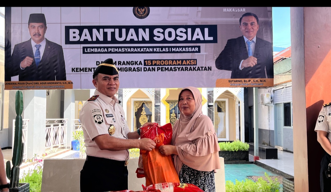 Makassar – Lembaga Pemasyarakatan (Lapas) Kelas I Makassar menggelar kegiatan bakti sosial dengan menyalurkan bantuan kepada keluarga warga binaan serta masyarakat kurang mampu yang berada di sekitar lingkungan Lapas. Bantuan yang diberikan berupa kebutuhan pokok sehari-hari seperti beras, minyak goreng, dan bahan pangan lainnya sebagai bentuk kepedulian nyata serta dukungan dalam membantu meringankan beban ekonomi masyarakat.
