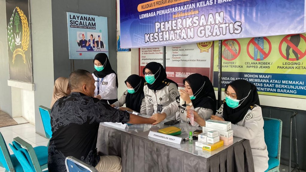Makassar – Lembaga Pemasyarakatan (Lapas) Kelas I Makassar terus menunjukkan komitmennya dalam memberikan pelayanan kepada masyarakat melalui kegiatan pemeriksaan kesehatan gratis bagi pengunjung serta masyarakat di sekitar Lapas, yang dilaksanakan pada Selasa (10/3). Kegiatan ini merupakan bagian dari implementasi 15 Program Aksi Kementerian Imigrasi dan Pemasyarakatan, khususnya pada program pelayanan kesehatan gratis dan bakti sosial kepada masyarakat di sekitar Unit Pelaksana Teknis Pemasyarakatan.